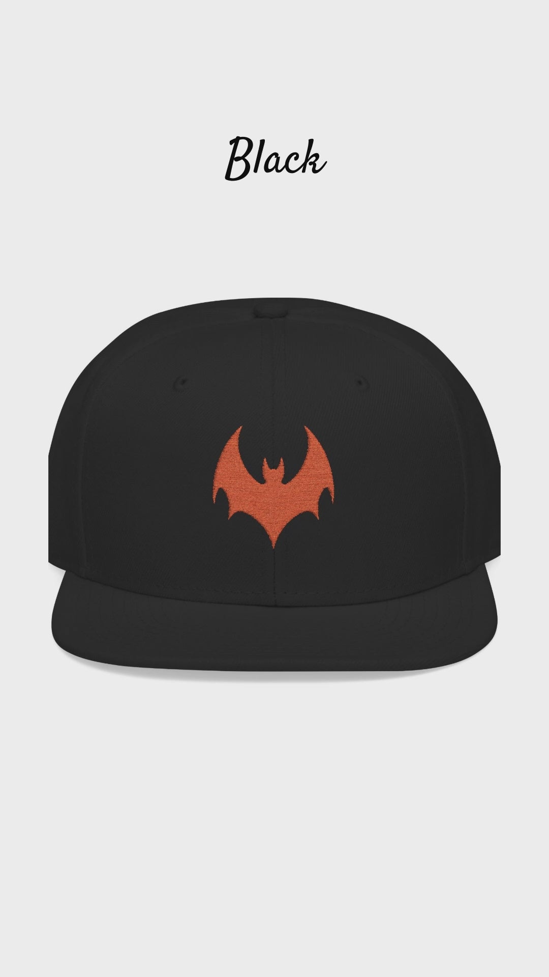 Elevate your streetwear with this bold black snapback cap featuring a striking orange embroidered bat. Perfect for Halloween vibes, gothic fashion, or adding a statement edge to any outfit. With its flat brim and adjustable fit, this cap combines comfort and standout style. A must-have accessory for trendsetters, bat lovers, and anyone who dares to go bold.