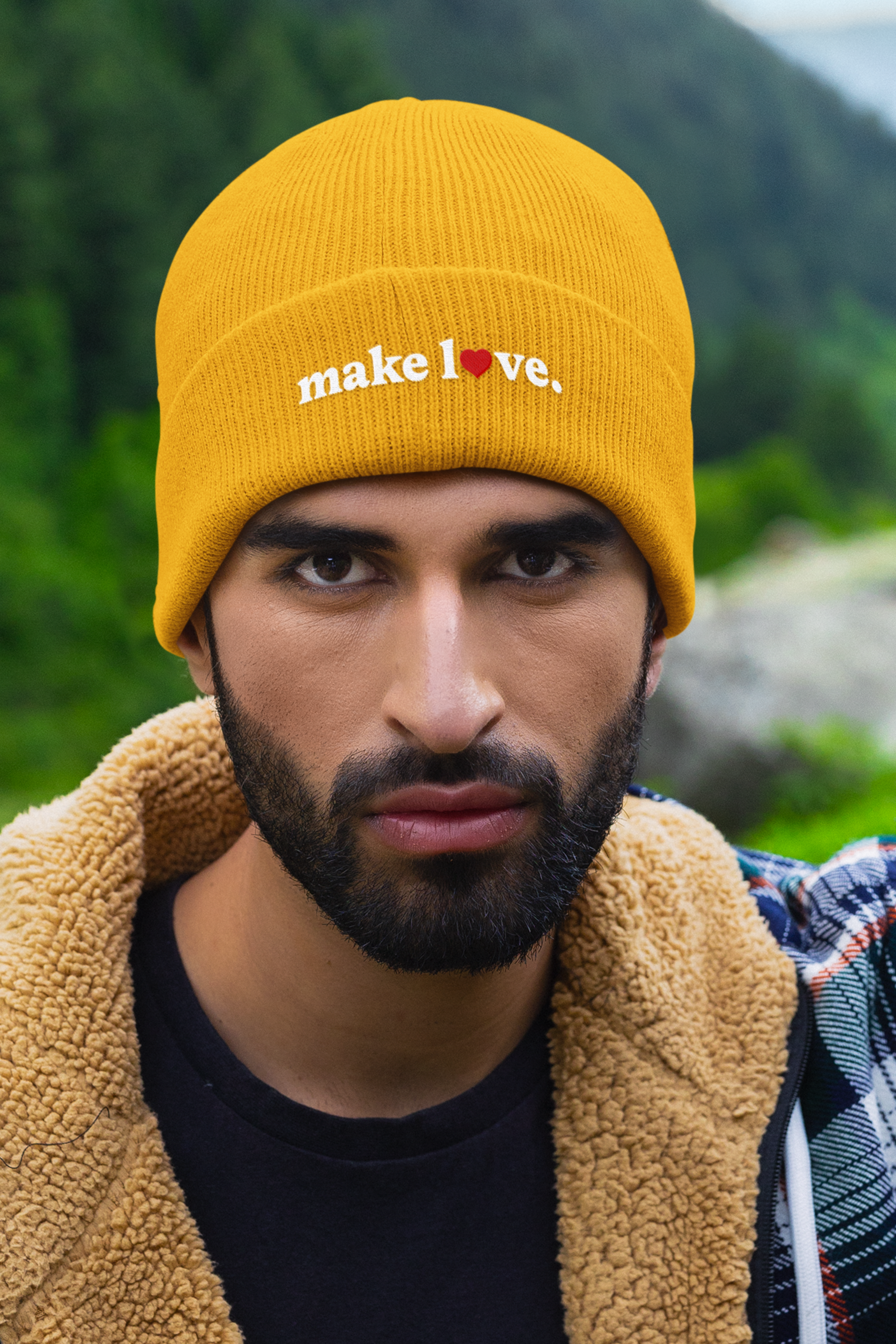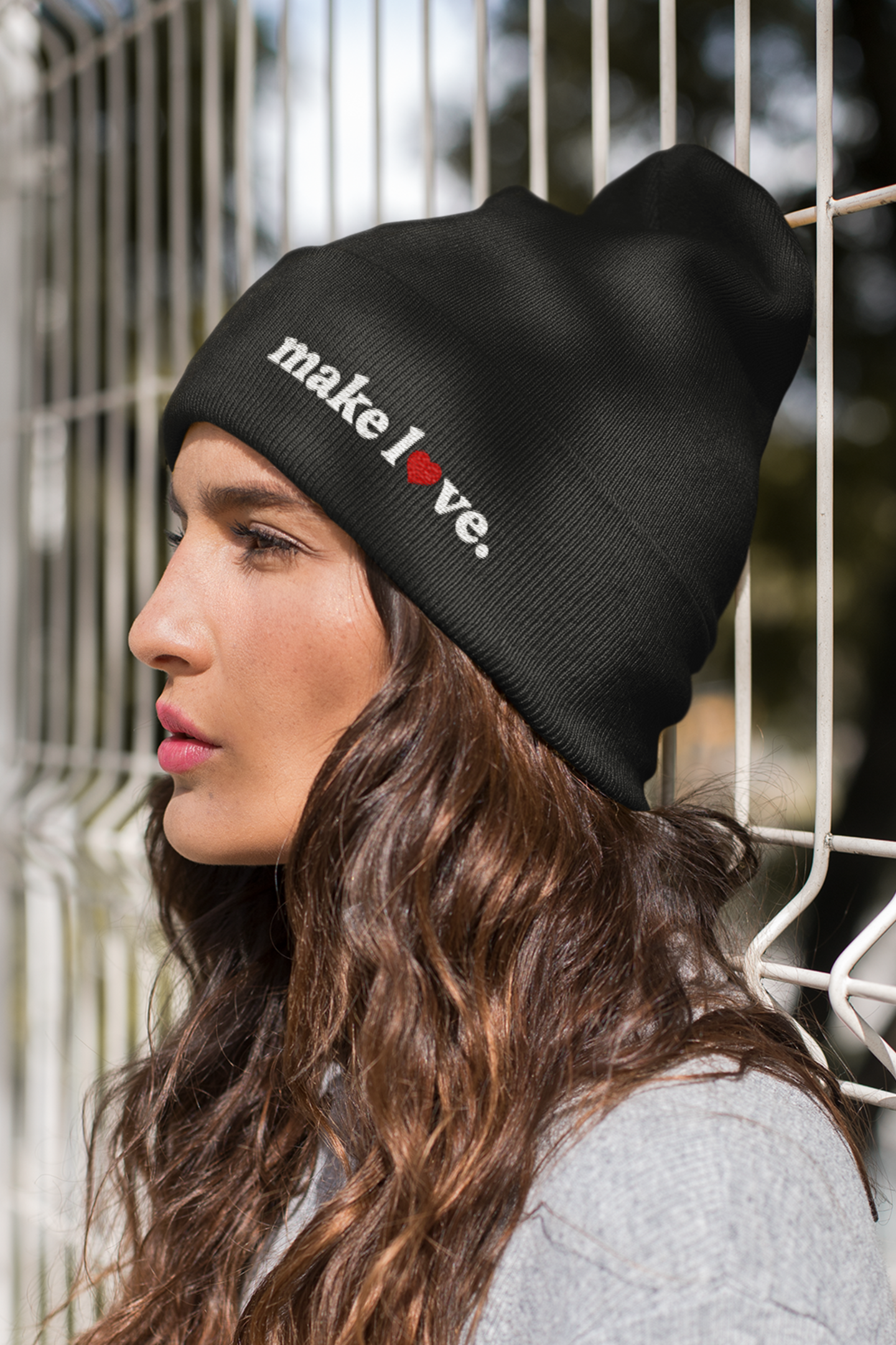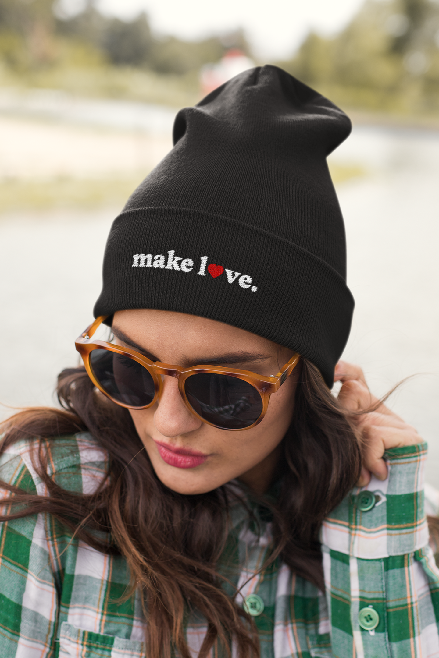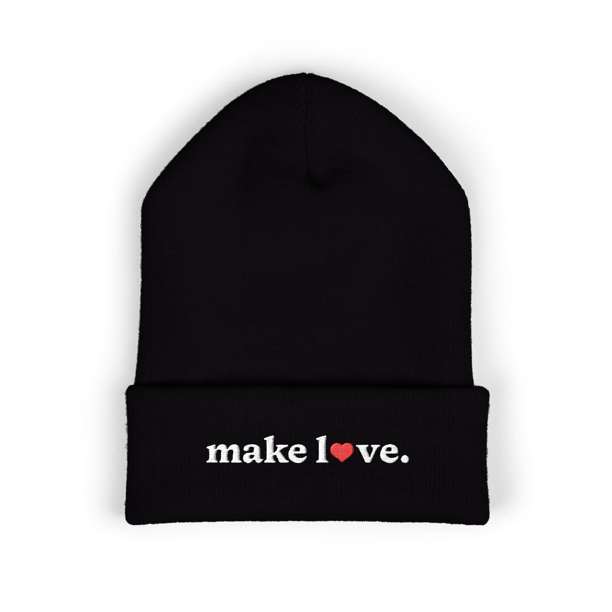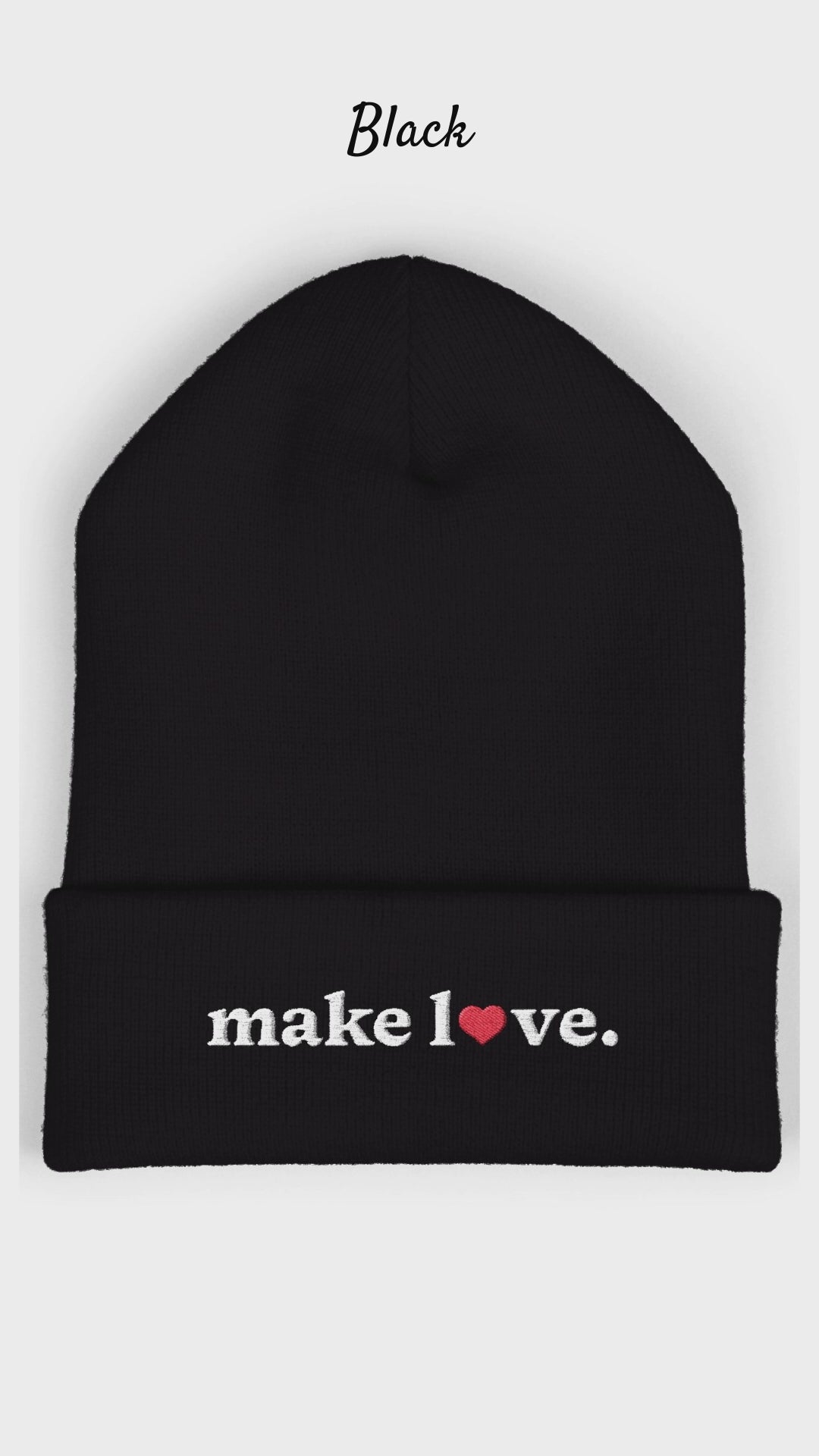 Make Love Embroidered Beanie, Cozy Cuffed Beanie Hat, Trendy Winter Accessory, Gift for Him or Her, Valentines Day Beanie, Unisex Hat
